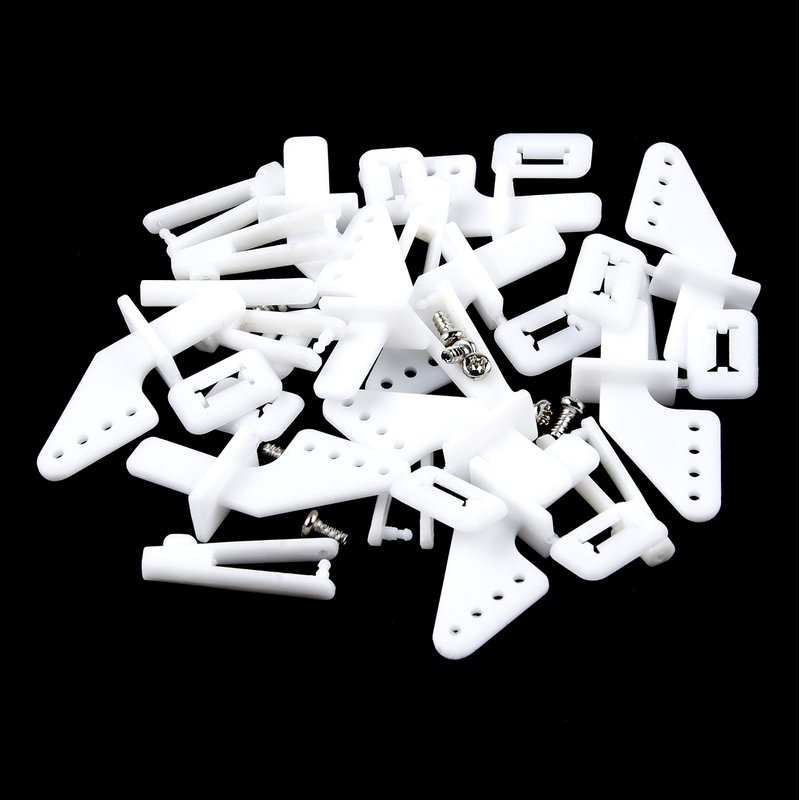 - Lock on nylon control horns, 35mm * 15mm, designed with 4 holes, easy to install, sturdy in flight.