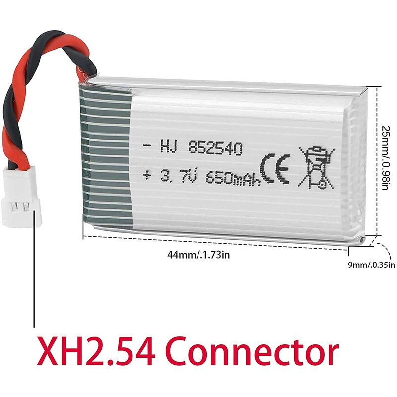 - 🔋Specifications: XH2.54 Connector, Voltage 3.7V, capacity 650mAh, battery size 44 * 25 * 9mm/1.73 * 0.98 * 0.35 inches, weight :17.6g. Make sure your Drone or other RC toy's battery is compatible with ours, especially Connect