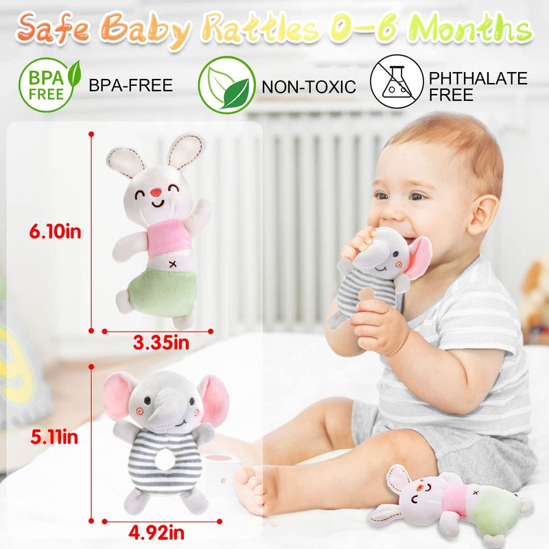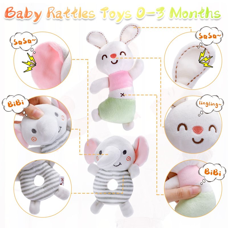 - 【Easy to Carry】The baby rattle toy is light in weight and small in size, so it is convenient to put it in your carry-on bag while traveling. The elephant and rabbit rattle toy also the best partner for outdoor travel, suitable as car seat toys, stroller toys