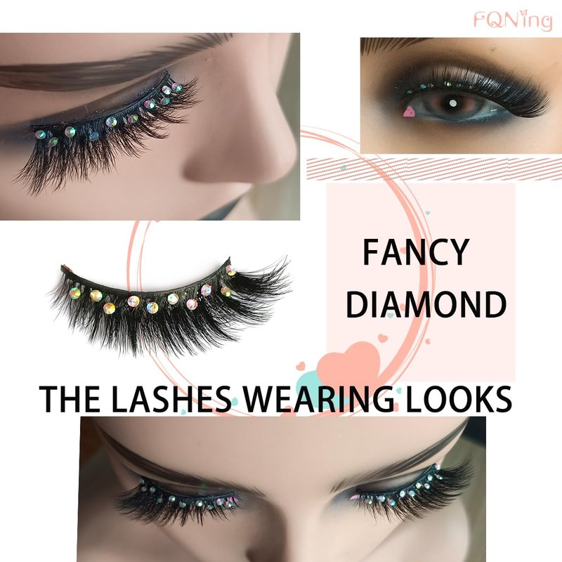 FQNing sparkle mink lashes with jewels, glamorous glitter rhinestone cat-eye eyelashes 4 pairs (Fancy Diamond)