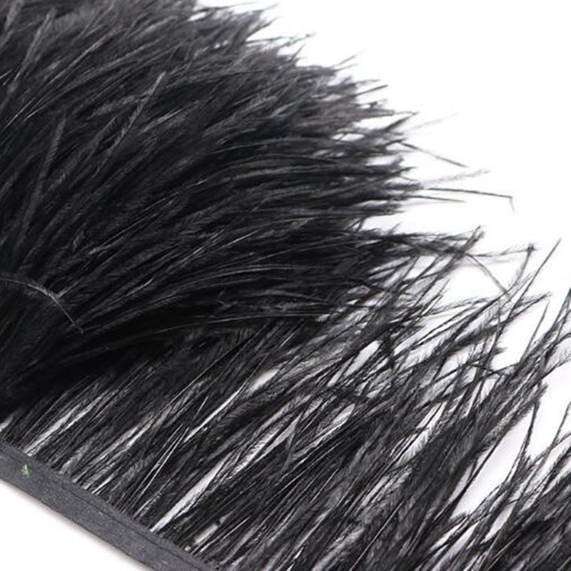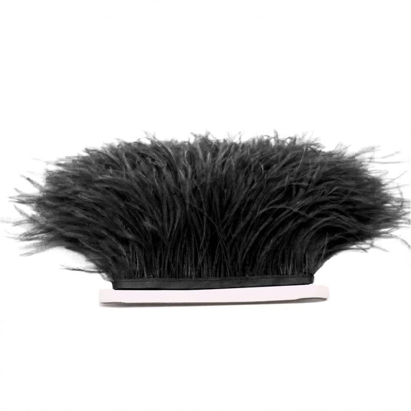 FQTANJU 2 Yards Soft & Natural Ostrich Feathers Fringe Trims Ribbon Used for Dress, Sewing, Craft Clothing, Lighting Decoration, Clothing DIY, etc. (Black)
