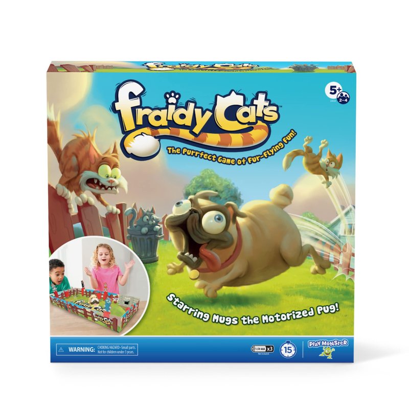 - FRAIDY CATS: Try to get your cat around the board and back home without running into Mugs, the motorized pug!
