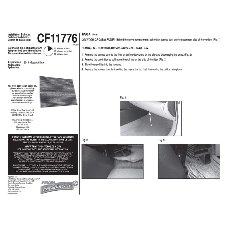 - EASY INSTALL: This cabin air filter is located behind the glove box and on average will only take 15 minutes to replace the old filter with a new filter. It is important to replace your cabin air filter periodically to help keep the air in your vehicle clean. During extreme weather and heat, the HVAC system has to work harder and a clean cabin air filter is essential in helping your HVAC system run more efficiently.