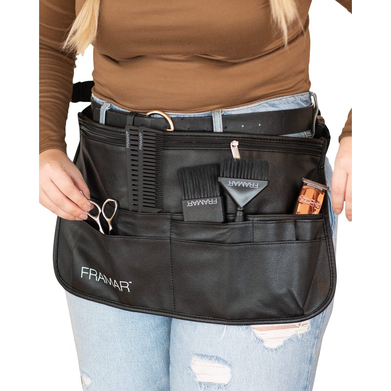 FRAMAR Hipster Salon Belt – Hairstylist Belt, Hairstylist Waist Belt, Salon Aprons for Hair Stylist, Hair Apron Stylist Holster, Makeup Brush Belt Professional, Makeup Waist, Shears Pouch, Makeup Belt