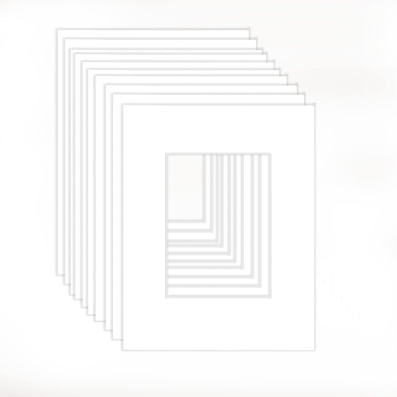 - CONTENTS: 10 Mats. 4x6 inch white mats with 2.5x4.5 opening for displaying 3x5 picture. White core. Premium-grade with 0.06 inch thickness (4-ply). Smooth Texture.