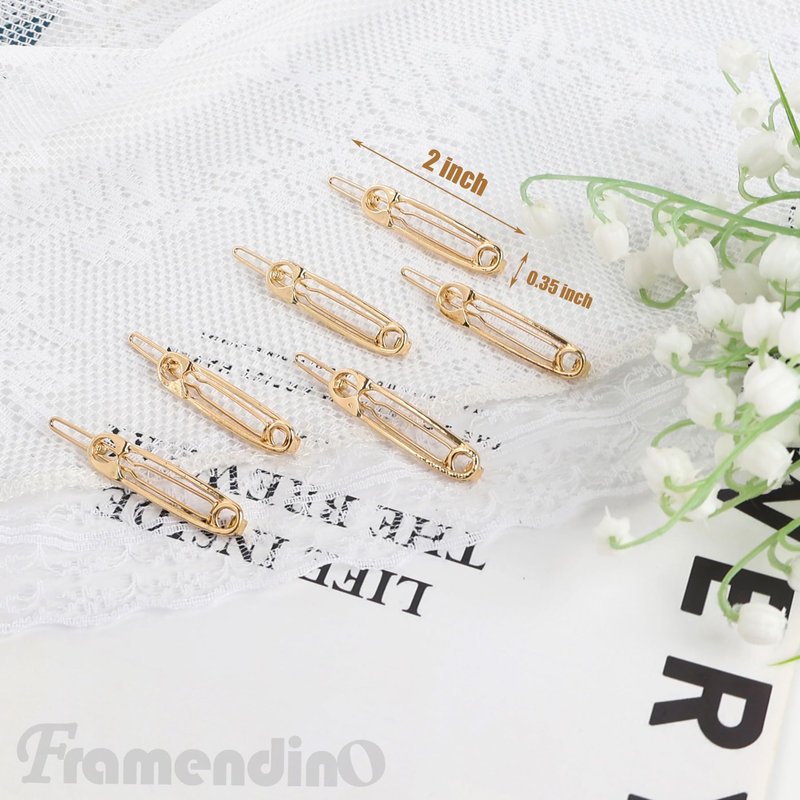 Framendino, 15 Pack Gold Hair Pins Hair Clips Safety Pin Shape Hairpins Barrettes Goth Hair Pins for Women Girls Hair Accessories