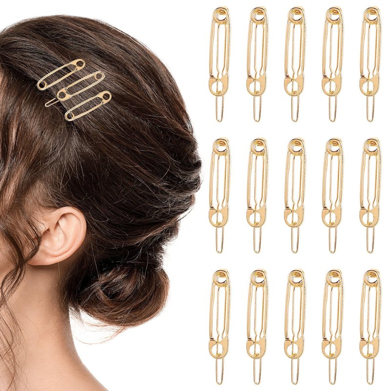 Specification* 【Material】 Safety pin hair clip is made of alloy with smooth surface* 【Color】 Gold* 【Size】 The haripin is about 2 x 0.35inch* 【Quantity】 15 pack