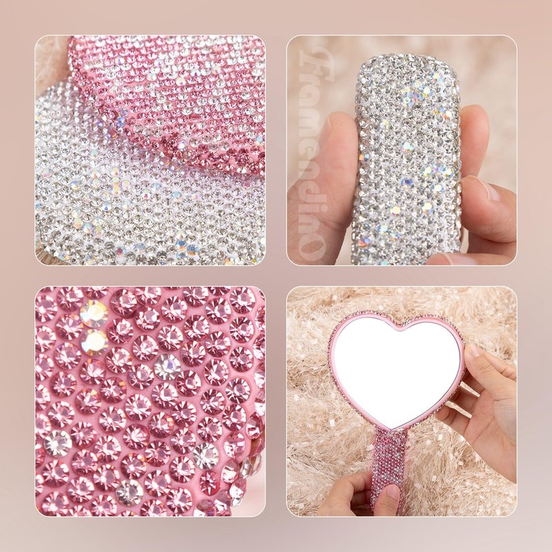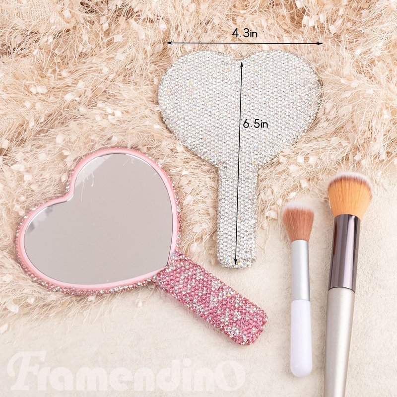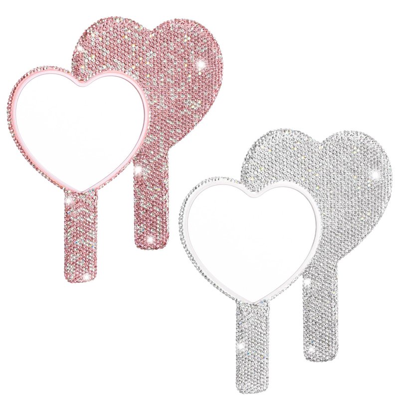 - 【Quantity】you will receive 2 pieces of rhinestone heart shaped mirrors with handle in 2 colors, pink and silver white