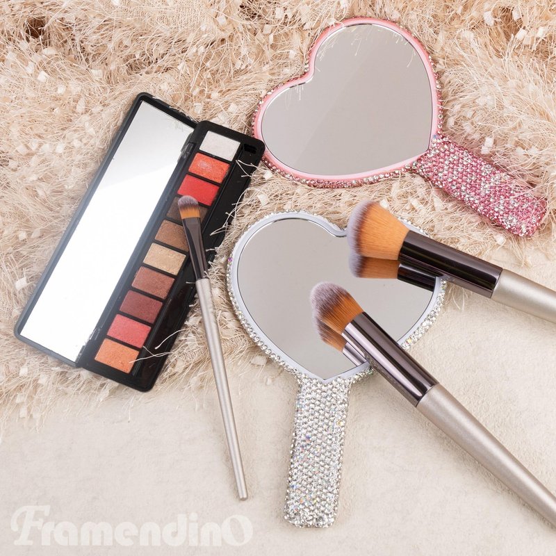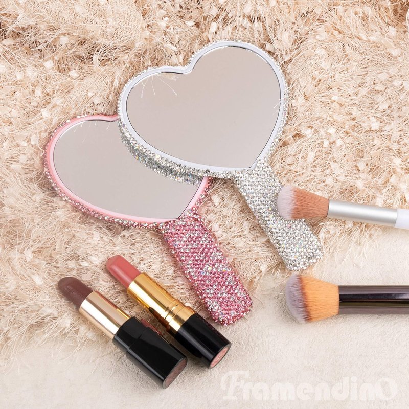 - 【Design】the beautiful rhinestone makeup mirror adopts a heart shaped design, lovely and fashionable, catering to most girls; it is also equipped with a handle, simple for you to hold, providing convenient use