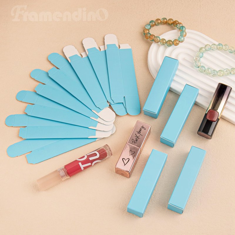 Framendino, 50 Pack Blue Kraft Lipstick Boxes Rectangle Reusable Lip Balm Packaging Cases Gift Wrapping Box for DIY Gift Packaging