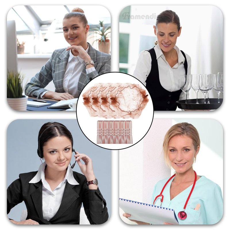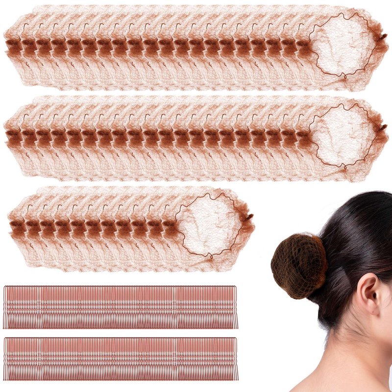 Framendino, 50 Pack Hair Nets Invisible Elastic Edge Mesh with 100 Pack U Shaped Pins Set for Women Ballet Bun