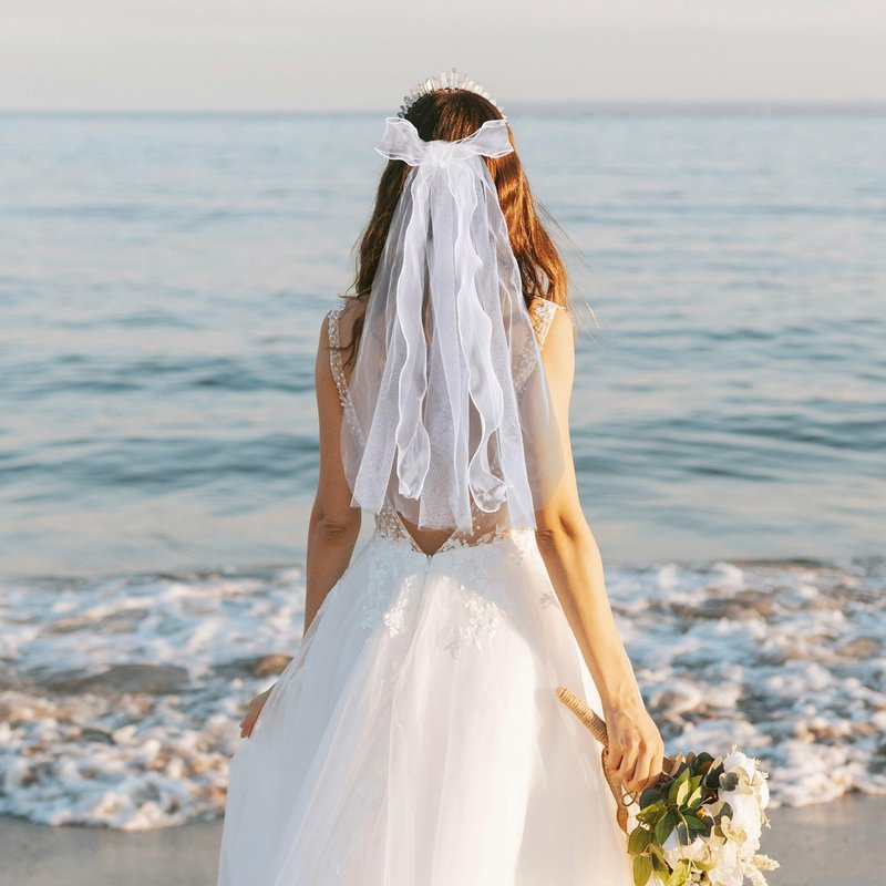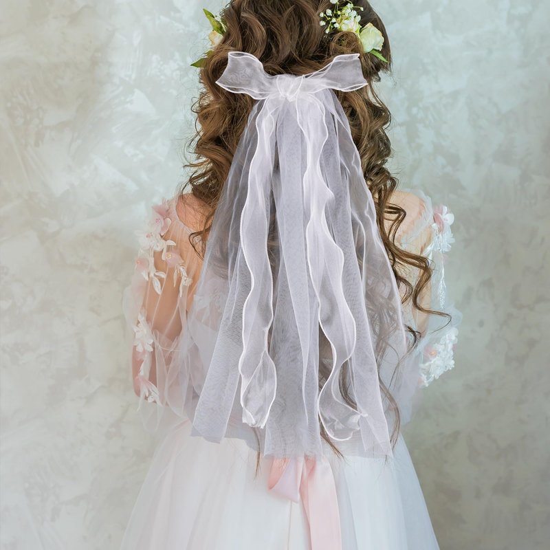 - (Stylish Design) The White Hair Bow Veil with a Tulle Bow Adds a Touch of Elegance and Charm to Your Wedding Ensemble
