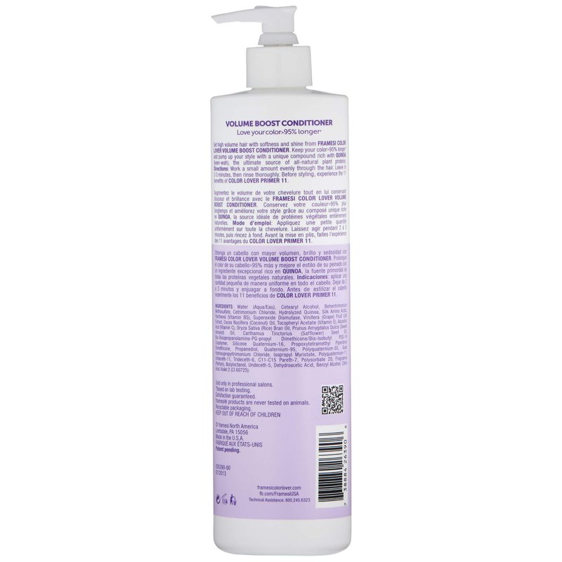 Framesi Color Lover Volume Boost Conditioner, 16.9 fl oz, Sulfate Free Volumizing Conditioner with Quinoa and Coconut Oil, Color Treated Hair