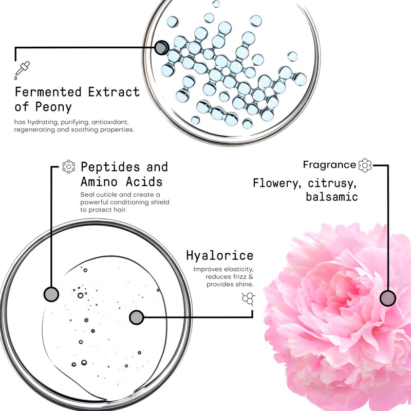 - Revitalizing shampoo and conditioner duo for frizzy, lifeless hair. Enriched with Peony and Hyalorice, it hydrates and nourishes the hair fiber for a soft, anti-frizz effect.