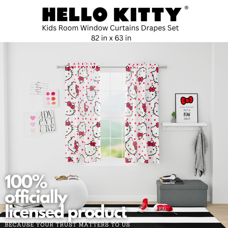 Franco Hello Kitty Kids Room Window Curtains Drapes Set, 82 in x 63 in, (Official Licensed Product)