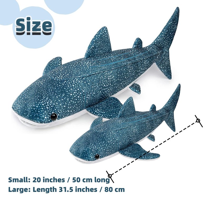 - 【Super Lifelike Shark Plush】Our Giant Whale Shark Plush Imitates Real Shark.The Adorable Face and Squeezable Body of Our Shark Plush are made from Simulation fur and PP Cotton Filling.Shark Fur is Smooth and Soft, Bright Blue Body Bottom,These Very Soft and Beautiful Toys Will Delight Your Child and Will Be Loved by Shark Lovers