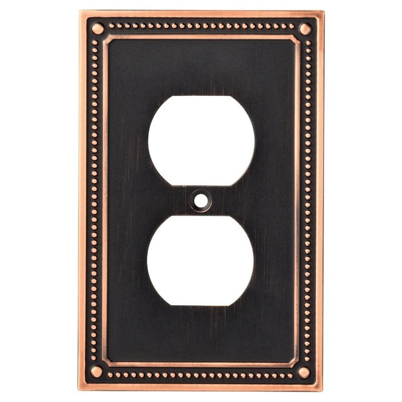 Franklin Brass Classic Beaded (1-Pack) Outlet Covers Bronze with Copper Highlights 1-Gang Wall Plate Single Duplex Switch Plates Electrical Outlet Covers W35059-VBC-C