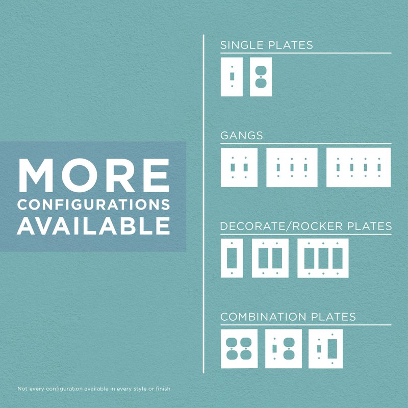 - SIZING: This configuration of wall plates and outlet covers is perfect for Single ports.
