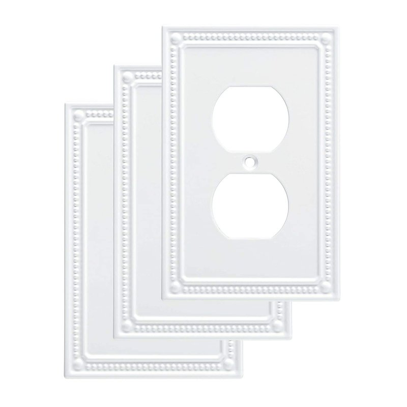 Franklin Brass Classic Beaded (3-Pack) Outlet Covers Pure White 1-Gang Wall Plate Single Duplex Switch Plates Electrical Outlet Covers W35059V-PW-C