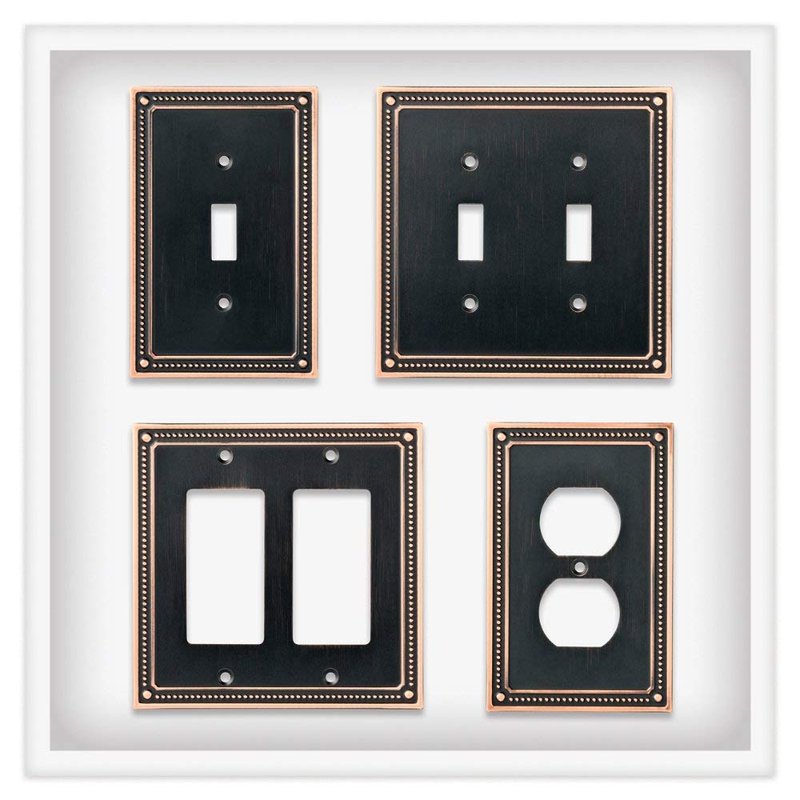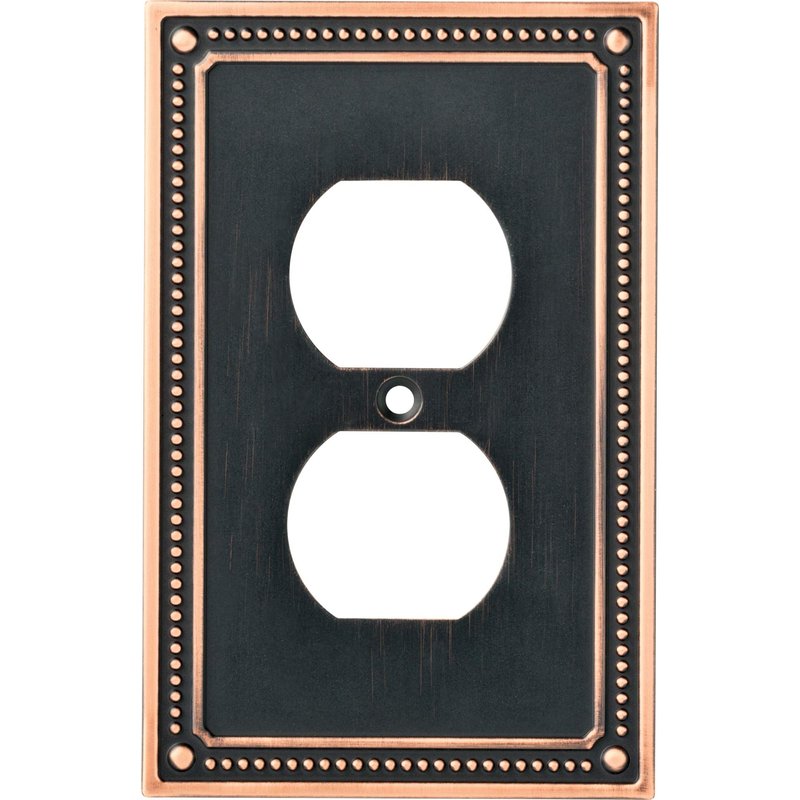 Franklin Brass Classic Beaded Wall Plate, Bronze with Copper Highlights Single Duplex Outlet Cover, 3-Pack, W35059V-VBC-C
