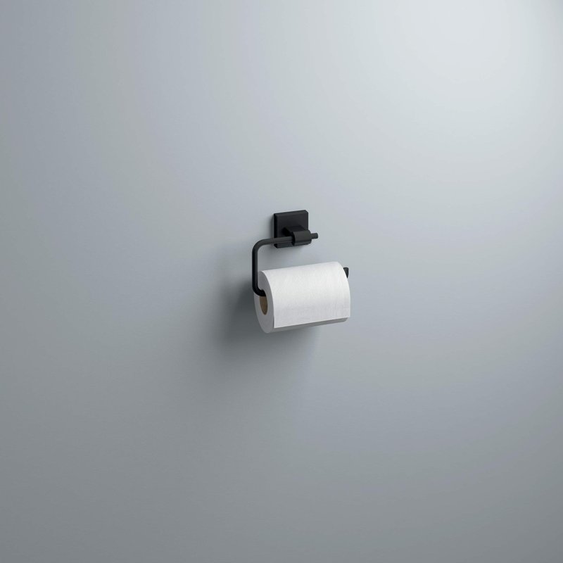 - BATH HARDWARE: Matte black open square toilet paper holder for bathroom