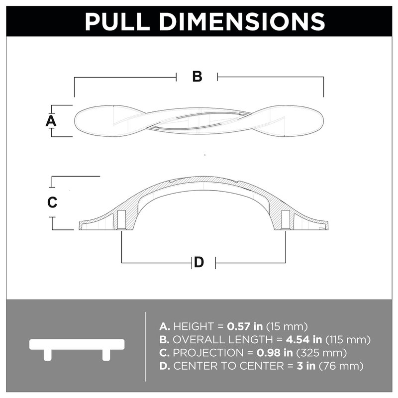 - SIZING: The collection of drawer pulls measures 3 (76mm) center-to-center and comes in a pack of 10, so you can make your cabinet upgrades in bulk.
