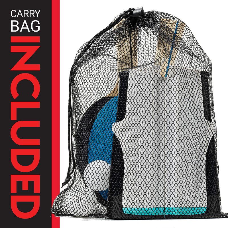 - MESH CARRY BAG INCLUDED Drawstring mesh bag holds everything neatly and securely, so you can take it anywhere for instant fun for the whole family