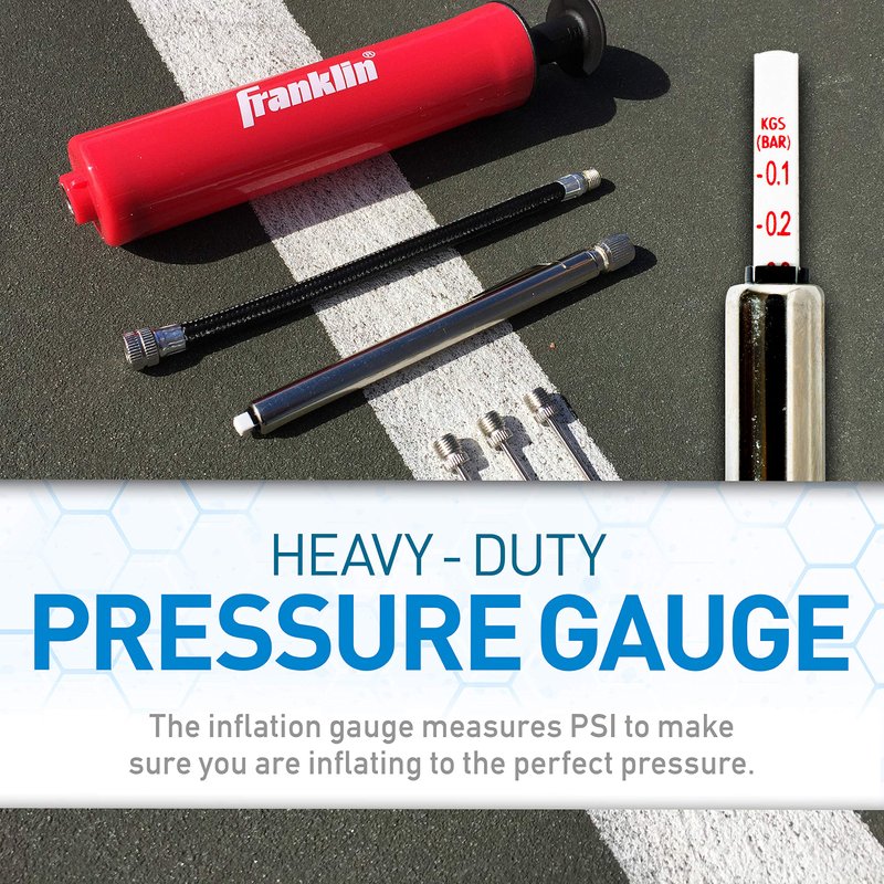 Franklin Sports Ball Pump Kit -7.4" - Perfect for Basketballs, Soccer Balls and More - Complete Hand Pump Kit with Needles, Flexible Hose, Air Pressure Gauge and Carry Bag,Red