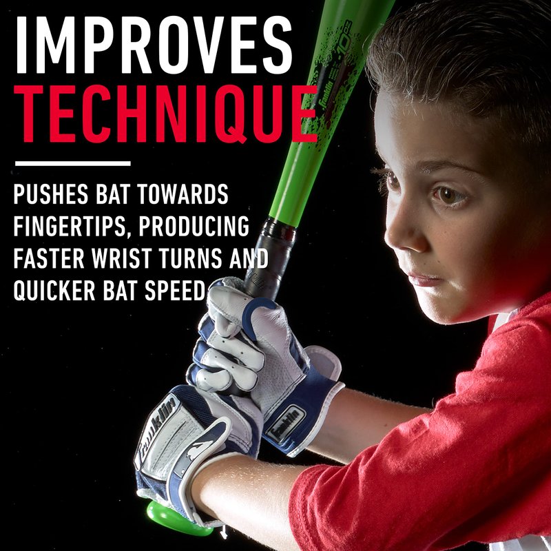 - IMPROVES TECHNIQUE: Pushes bat towards fingertips, producing faster wrist turns and quicker bat speed