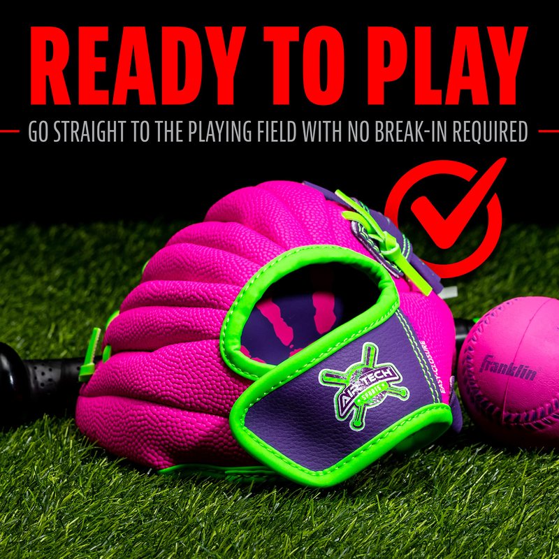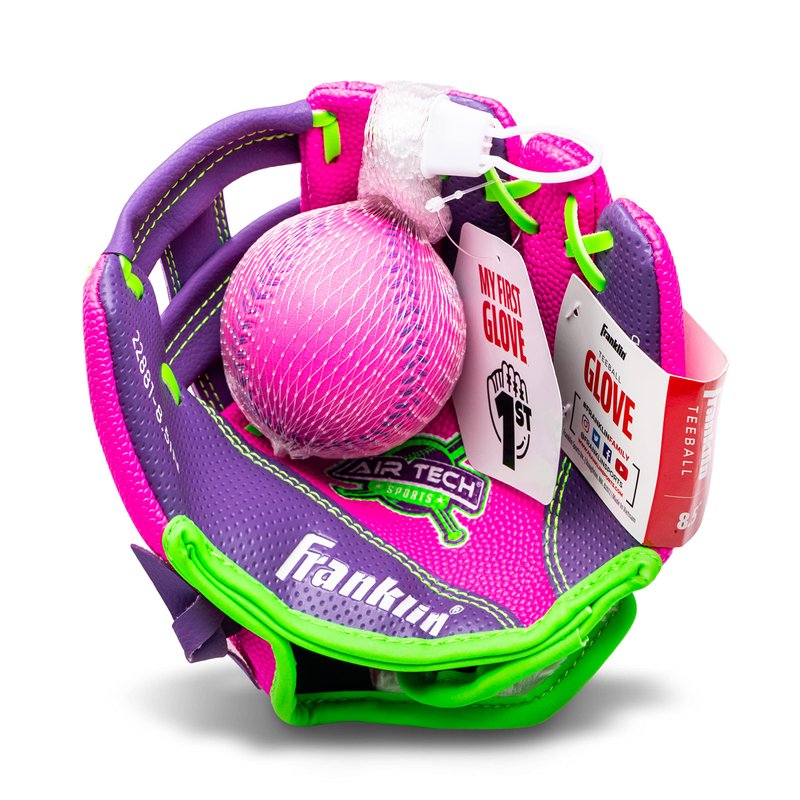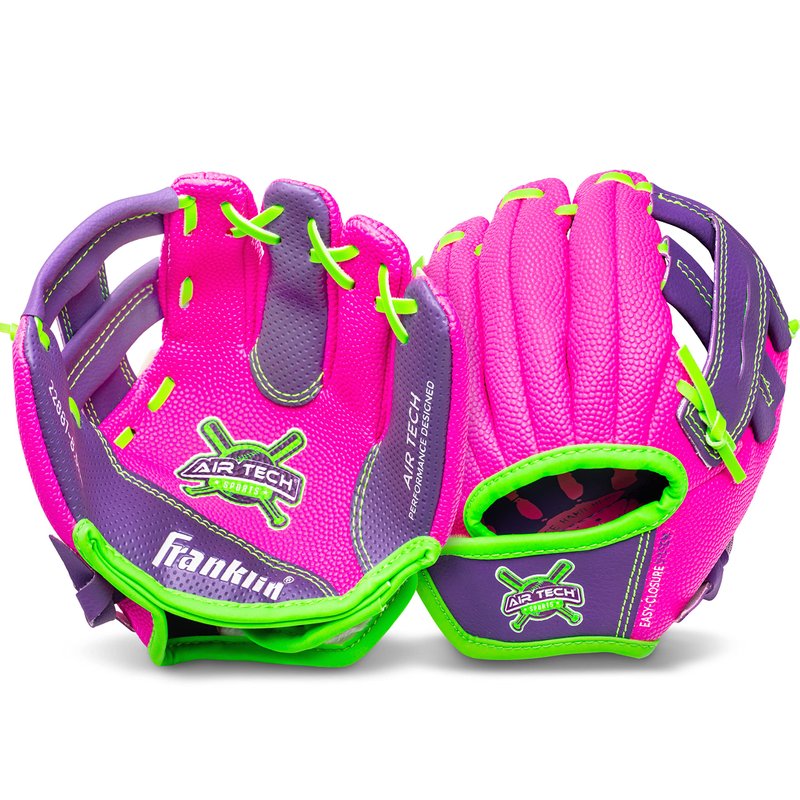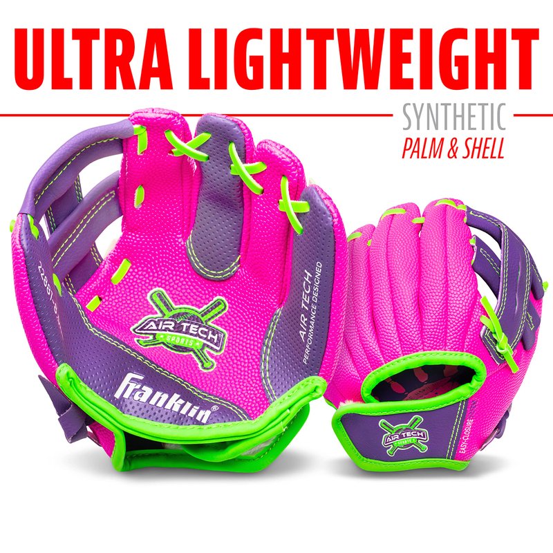 Franklin Sports Baseball Glove - AirTech Boys + Girls Youth Teeball Glove - Kid + Toddler Teeball + Baseball Mitt - Right Hand Throw - 8.5", Pink/Purple