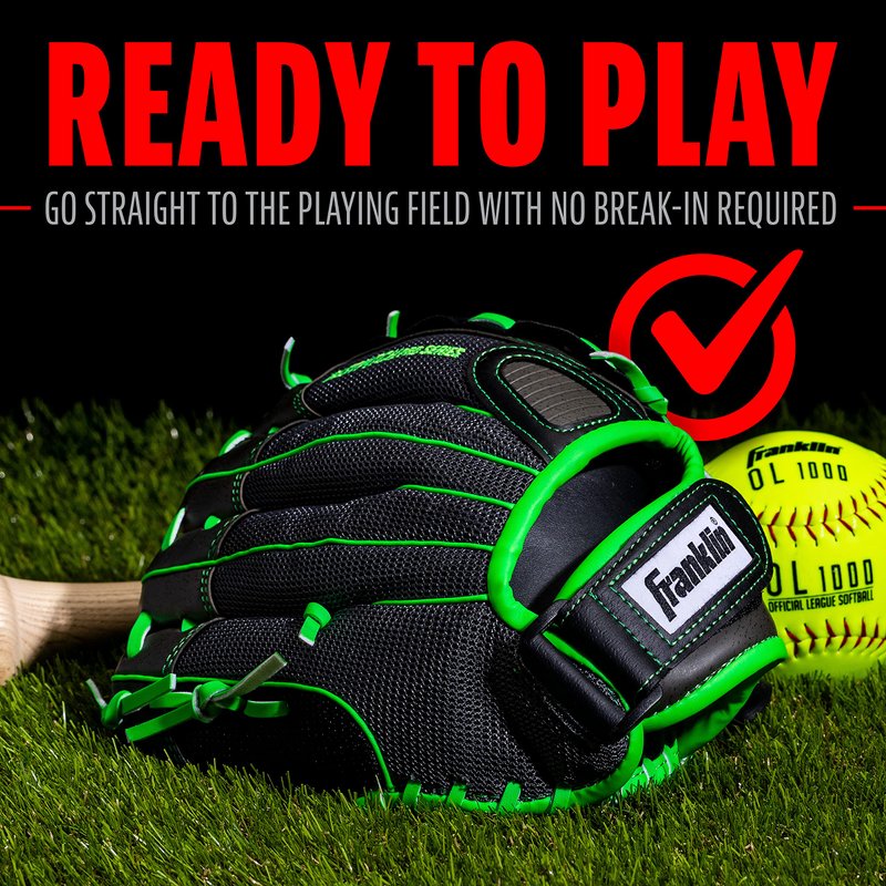 Franklin Sports Girls Softball Glove - Women's Windmill Fastpitch + Slowpitch Softball Glove - Green Softball Mitt - Right Hand Throw Adult + Youth - 11", Lime