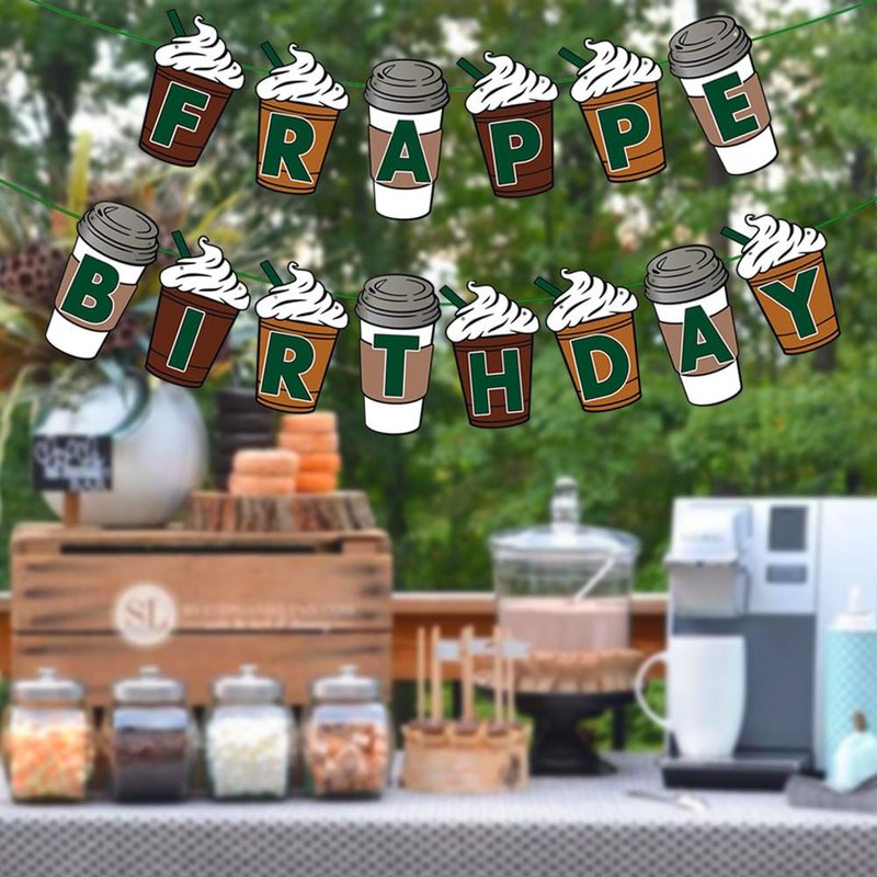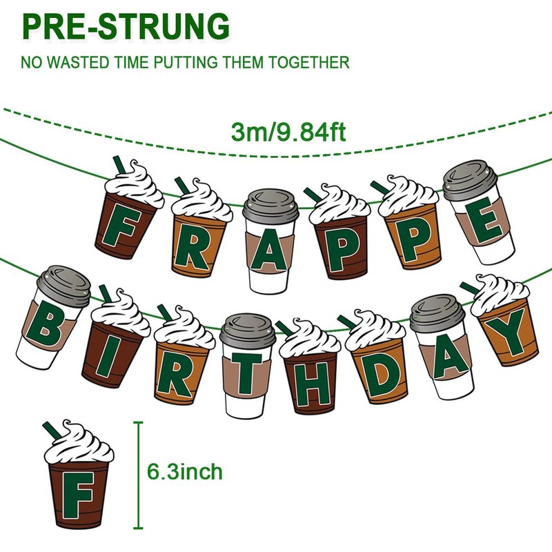 Frappe Coffee Birthday Decorations Pre-Strung Party Banner Frappe Coffee Cafe Party Supplies Favors
