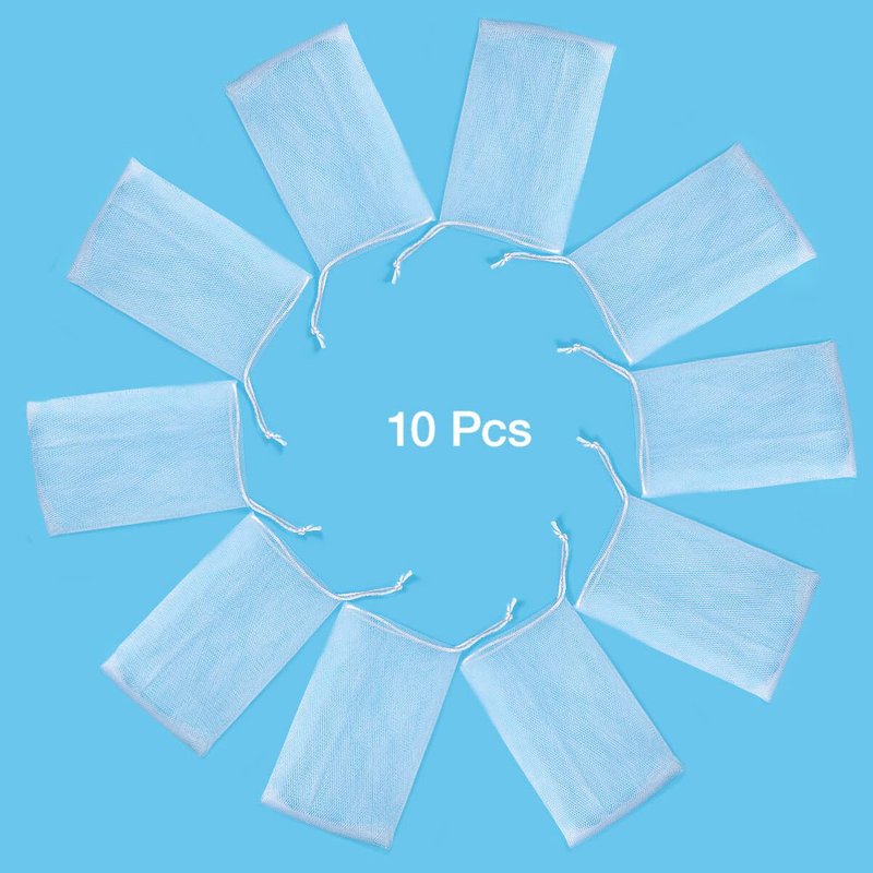 10 * Exfoliating Mesh Soap Saver Pouch Bubble Foam Net Handmade Soap Mesh Bag Body Facial Cleaning Tool