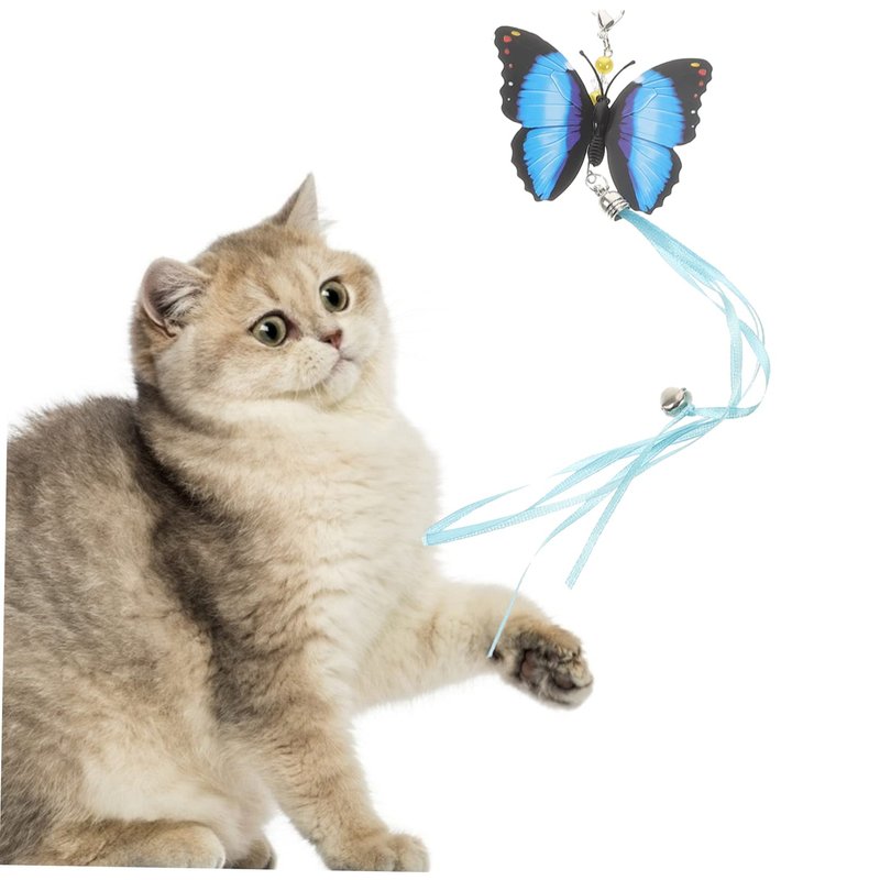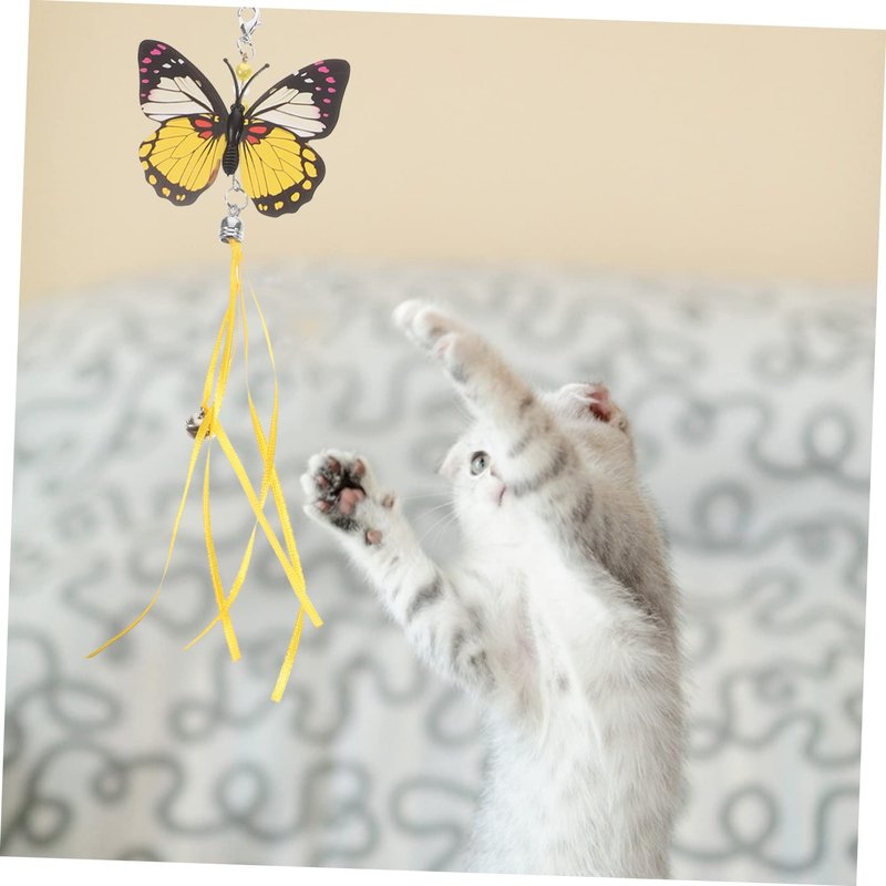 - Hanging cat toy-- the vivid patterns for this realistic butterfly toys for cats, when you shake the butterflies, the bell will make a sound to attract your cat