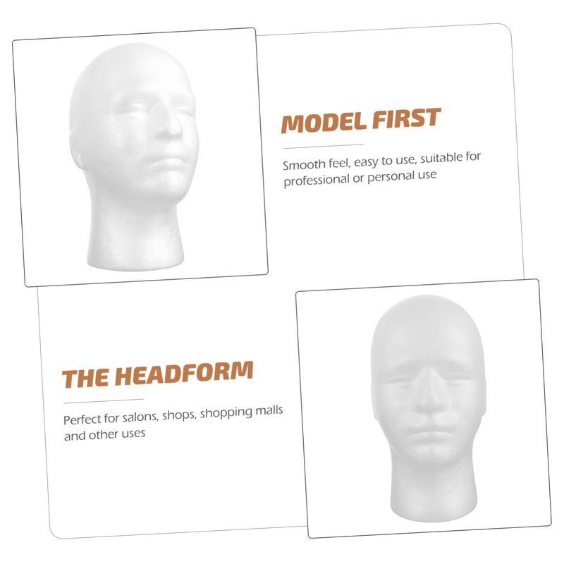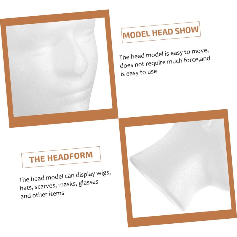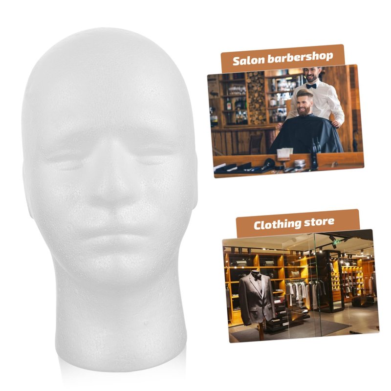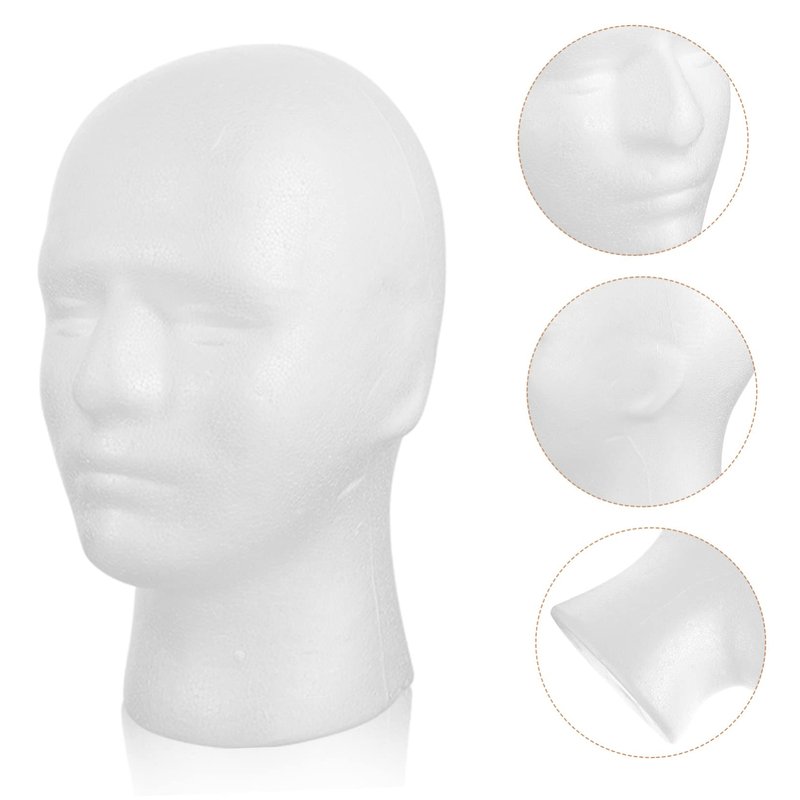 - Head male: foam mannequin head the head model can display wigs, hats, scarves, masks, glasses and other items