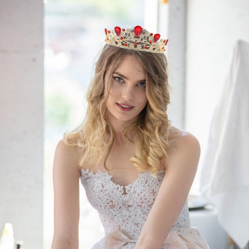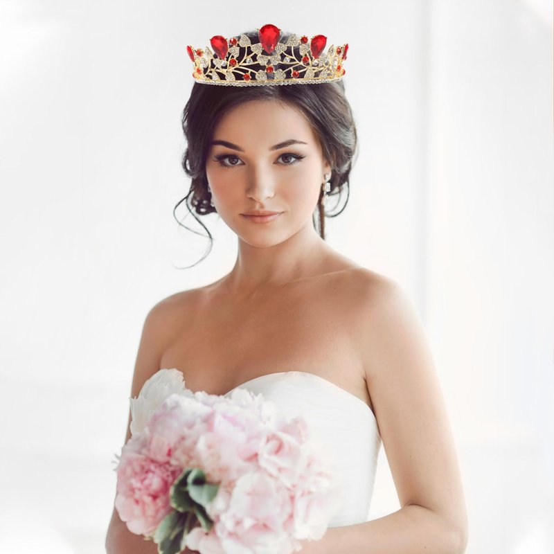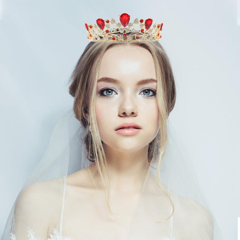 - 👑RHOMBIC RED GEMSTONE --- This tiara and crown features shiny rhombus stones, which looks very elegant and delicate.