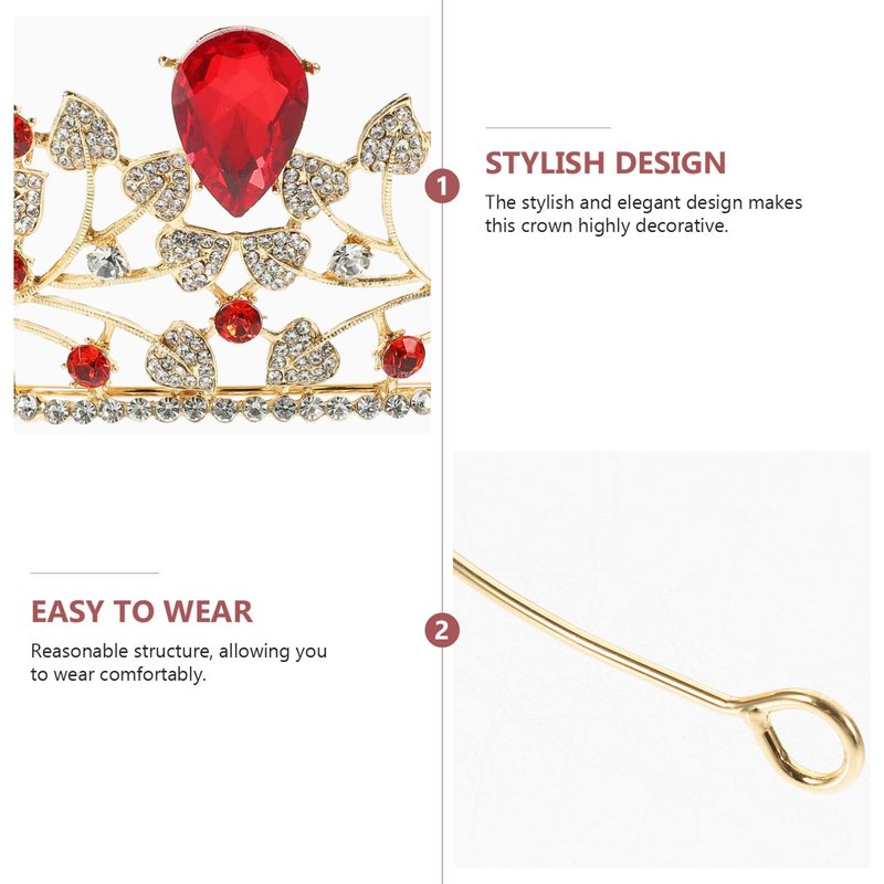 - 👑HIGH QUALITY MATERIALS --- Red crown is made of zinc alloy and rhinestones, which guarantees durable use and shiny appearance