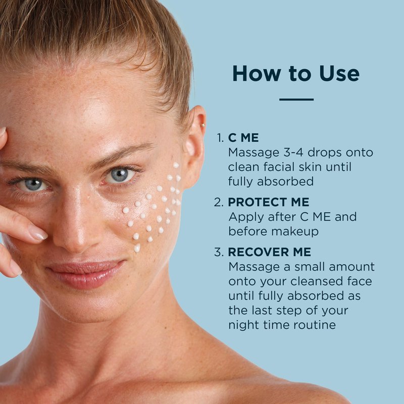 - How to Use: Massage 3-4 drops of C ME onto clean facial skin each morning until it is fully absorbed. Next, apply PROTECT ME, followed by makeup. At night, massage a small amount of RECOVER ME onto your cleansed face until fully absorbed.
