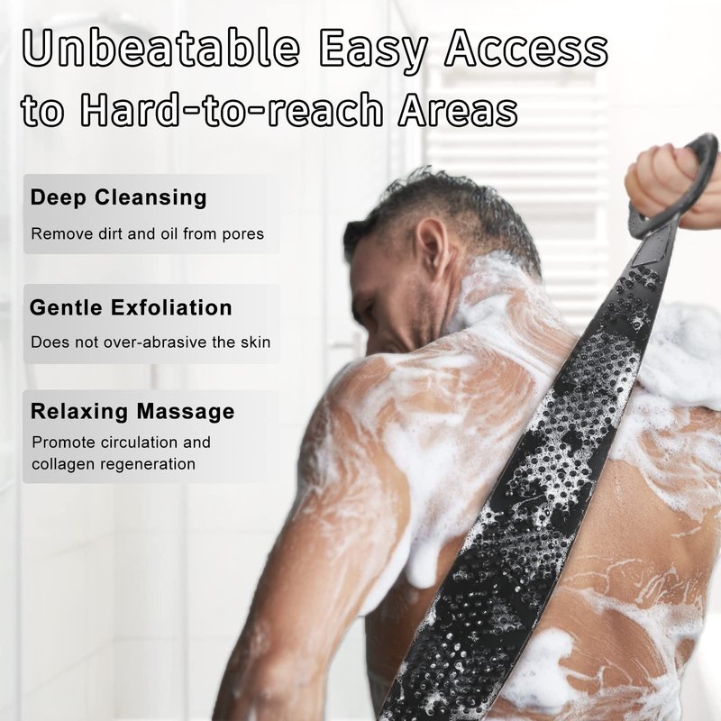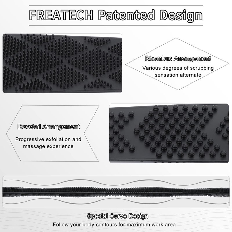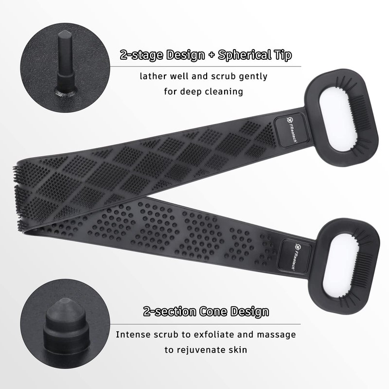 FREATECH Exfoliating Silicone Back Scrubber - 38" Dual-sided Shower Back Washer for Deep Cleansing and Massage, Cover the Entire Back, Smooth & Rejuvenate Skin, Easy to Clean and Long-lasting, Black