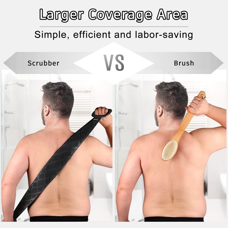 - 【A Great Addition to Your Bathroom】 Our food-grade silicone scrubber is definitely easier to keep clean and dry than traditional loofah/brush/towel, leaving you away from mold and allergies. Dual-textured back strap is long & flexible enough to wash every spot of your back without twisting. A perfect combination of scrub and massage to invigorate the skin.