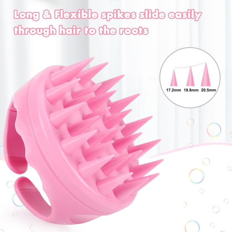 - 【Long & Soft Silicone Teeth】 Really hygienic and safe food-grade silicone. Soft spikes gently scrub the scalp without scratching, which are long enough to easily reach the roots for deep cleansing. Friendly to long, straight, curly and fine hair excluding super thick hair. Tourmaline contained activates cells and increases blood flow.