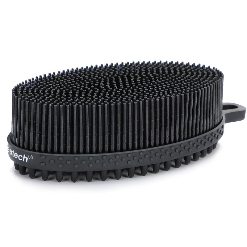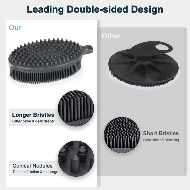 FREATECH Silicone Body Scrubber, Dual-Sided Bath Shower Body Cleansing Brush, Gently Exfoliate & Massage the Skin, Easy to Clean, More Hygienic and Long-Lasting Than Loofah, Black