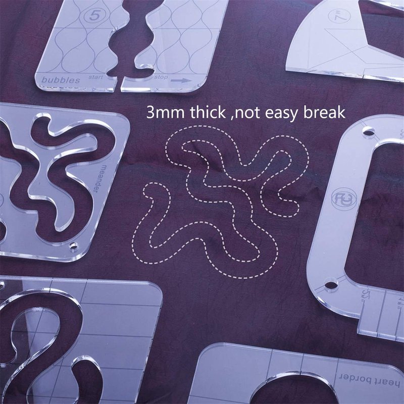 - Meander quilting templates are free-motion quilting design, made of quality acrylic, which are reliable to use, you can see clearly through transparent material, which making your artwork much easier and more convenient. This stencil style help you no longer need to mark your fabric, which can save you time and eliminate ugly marks; You can create your work quickly and easily, just arouse your imagination to make nice crafts work.