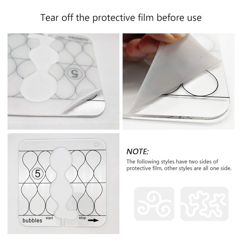 The template ruler is covered with opaque protective film on both sides. When using for the first time, please gently tear off the protective film on the surface.