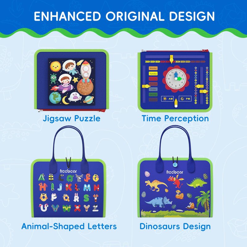 - ππππ πππππ ππ ππππππ - 4 different themes of toddler activities in this toddler busy board: Puzzle, alphabet, buckles, and zip. It's a good toddlers toys for traveling, thanks to the handbag design, you can bring it to wherever you want to go.
