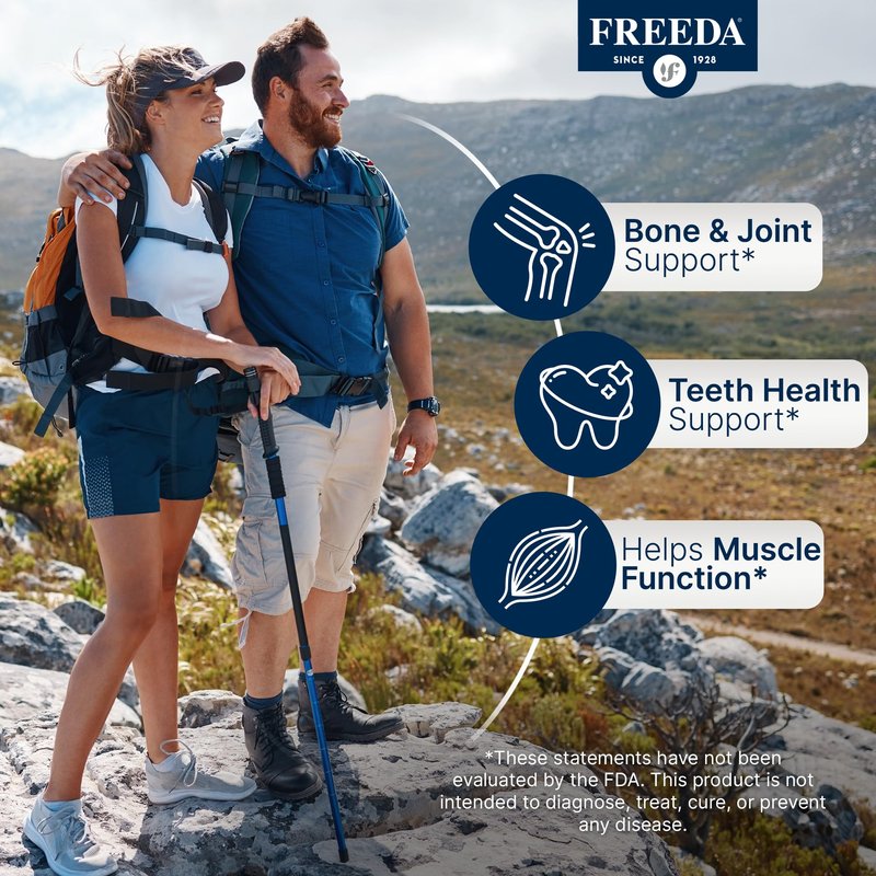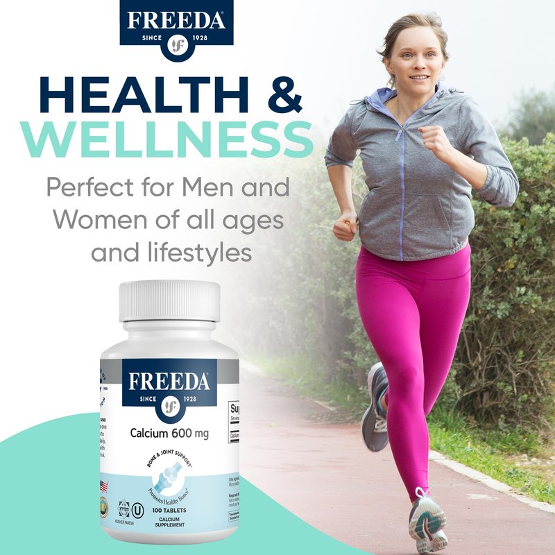If you’re looking for a straightforward, high-quality calcium supplement — you’ve found it. Freeda Calcium Carbonate 600 mg provides a potent dose of elemental calcium in each coated tablet to help support bone health, dental strength, and overall calcium balance in the body.* Calcium is an essential mineral that your body can’t produce on its own, and many adults — especially older individuals, postmenopausal women, vegans, and those avoiding dairy — don’t get enough through diet alone.* Freeda’s formula features calcium carbonate, the most concentrated form of calcium available, offering 600 mg per tablet in a clean, easy-to-take format. It’s free of gluten, lactose, sugar, starch, yeast, gelatin, and artificial additives, so it’s gentle on sensitive stomachs and perfect for anyone committed to a clean-label lifestyle.* Our tablets are certified Kosher and vegan, with no animal-derived ingredients or shellfish commonly found in other calcium products. Plus, they’re coated for easier swallowing, odorless, and taste-free — so taking them daily won’t feel like a chore.* Manufactured in the USA in a GMP-certified facility and third-party tested to ensure purity and consistency, this supplement is part of Freeda’s 95-year legacy of trusted nutritional support.* Whether you’re focused on maintaining strong bones, aging well, or simply meeting your daily calcium needs with confidence — Freeda’s Calcium 600 mg is a dependable choice for your long-term health.*
