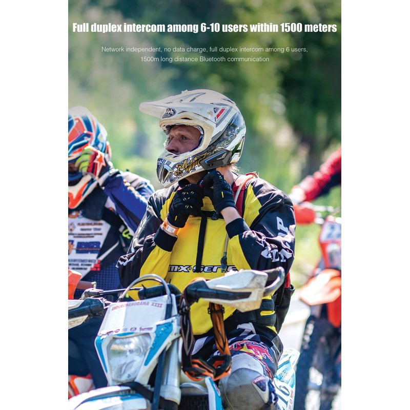 - 【Support 2-10 People Simultaneous Intercom】The FX motorcycle helmets headset adopts a new 3 cores processor Bluetooth 5.0, the system super stable, and achieves high speed, low delay and low distortion. Supports group intercom of 2-10 people. The Bluetooth Helmet Intercom Maximum communication distance of the group is about 4921ft, the maximum effective communication distance between 2 motorcycles is about 1312ft. Both can talk with clear sound (Note: provided there are no obstacles ).