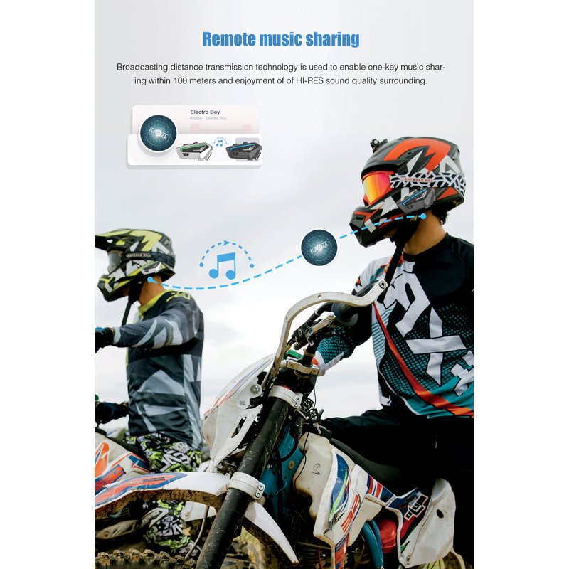 - 【Compatibility & Music Share】①The group helmet communication system headset compatible with 99.9% of Bluetooth devices, including other brands of helmet Bluetooth headset. And 1 Interphone can connect 2 phones at the same time. ②Support 2 intercoms to share music within 33-164 feet, allowing you to enjoy music with partner during the riding. Note: The Wireless group moto headset kit comes with 2 in 1 (soft/hard) microphone, suitable for most helmet types, such as full face, half face, 3/4 face, etc.