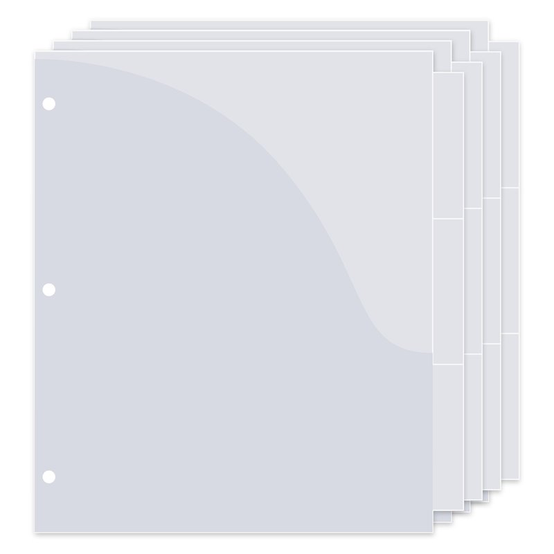 - Three-hole punched pockets fit inside any three-ring binder.