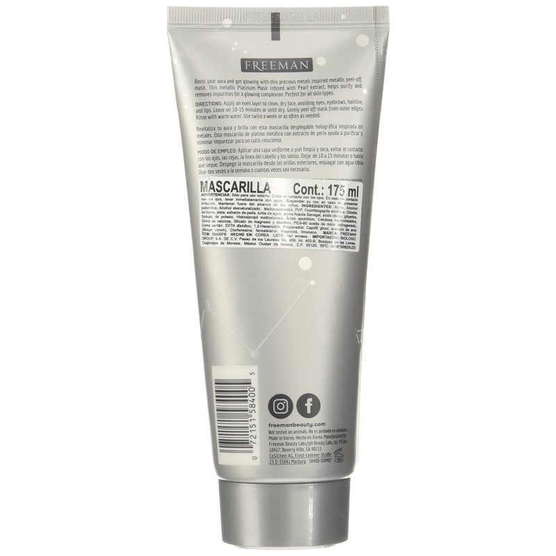 Freeman Cosmic Metallic Peel-Off Mask - Purifying Platinum for Women - 6 oz Mask